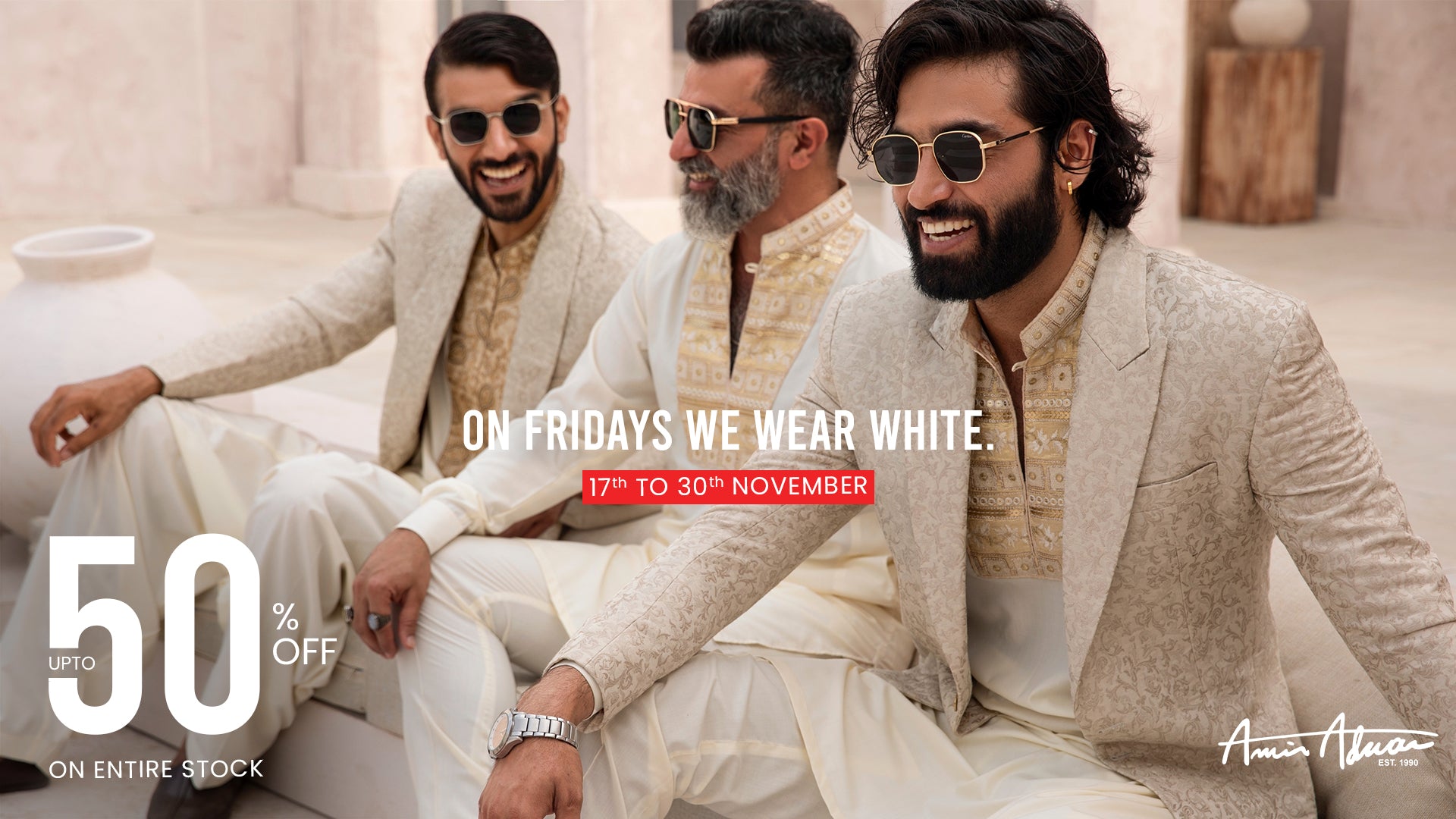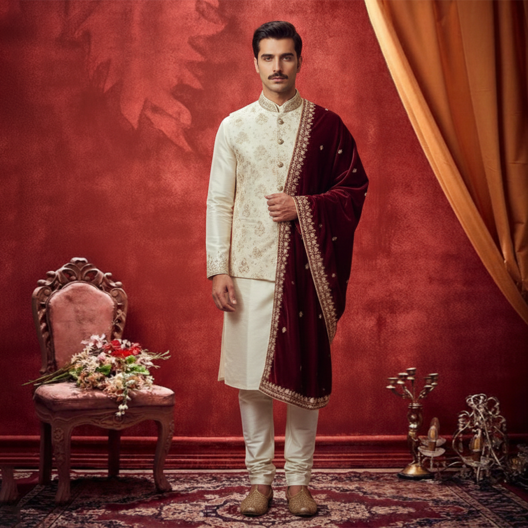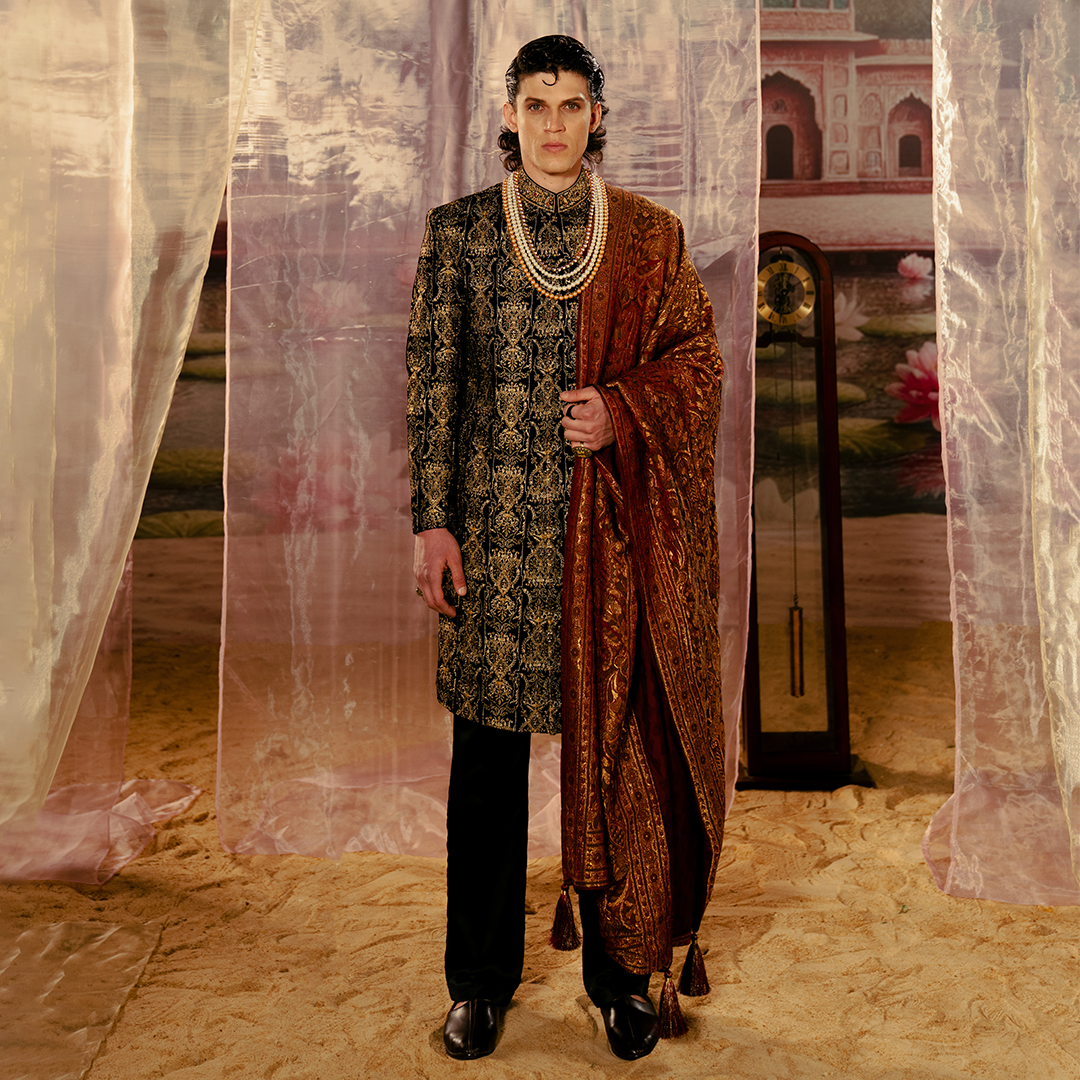 Amir Adnan's Sherwanis are tailored to perfection, ensuring a flattering fit and effortless elegance. Whether it's a bespoke Sherwani crafted for a groom or a ready-to-wear option for wedding guests, each garment reflects the brand's commitment to quality and craftsmanship. Overall, Amir Adnan's Sherwanis are a symbol of luxury, tradition, and sophistication. With their exquisite detailing, impeccable tailoring, and timeless appeal, they continue to be sought after by discerning customers who appreciate the finer aspects of Pakistani menswear.