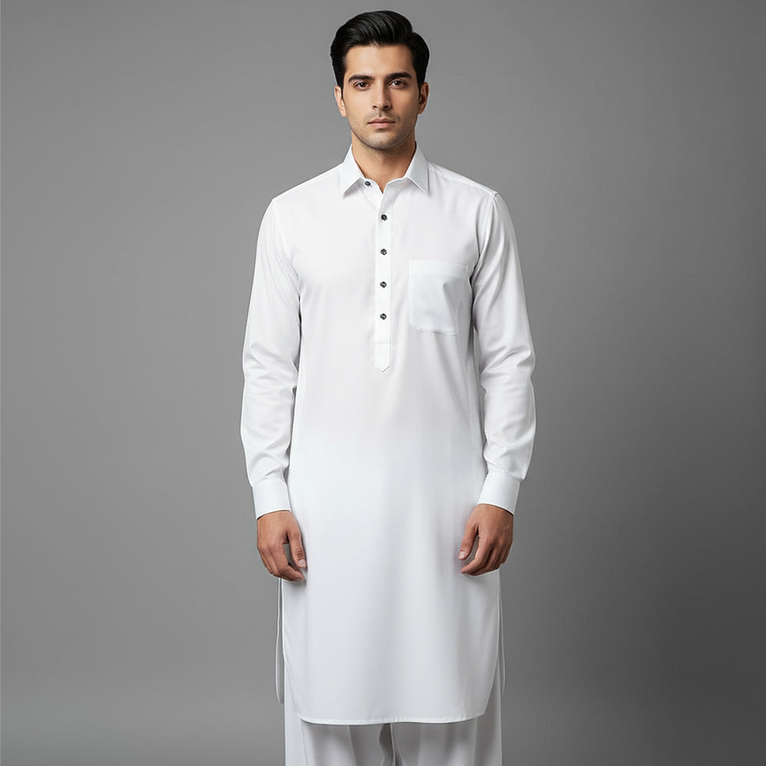 Crafted in Pakistan for the Summer 25 Collection, this Cloud Dancer Suit is made from a poly viscose blend that’s crease-resistant, iron-easy, and elegant. Featuring a normal Shirt collar and plain placket, it’s ideal for formal occasions and evening wear.