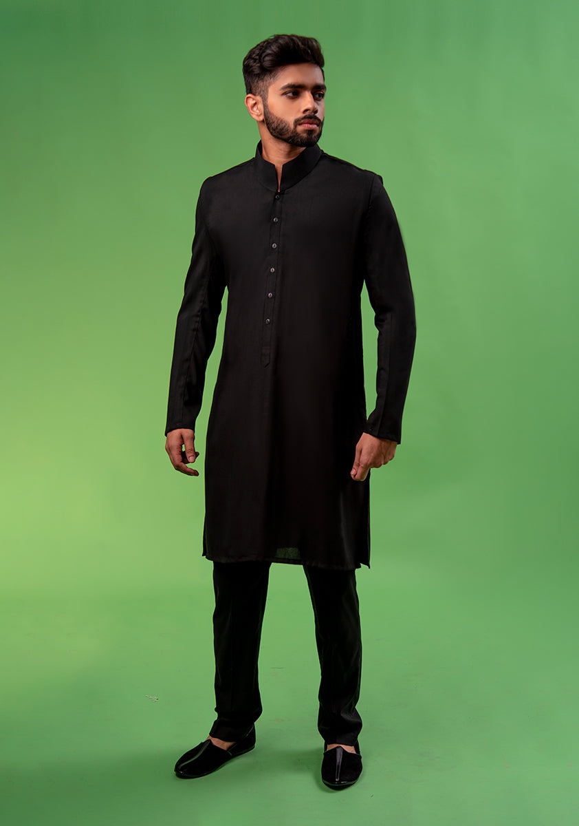 Crafted in Pakistan as part of the summer 22 collection, this Tap Shoe suit is constructed using a blend of poly viscose to create a crease resistant garment that is iron-easy, elegant and offers a versatile range of wear ability. It features a big Band Collar, Normal Placket with plain features. The garment is perfect for evening wear and occasions. Cut in a classic fit, which is an easy fit through the chest and sleeves with a tailored waist and hip – this two piece suit comes complete with a matching Tap Shoe Shalwar in the same poly viscose fabric.