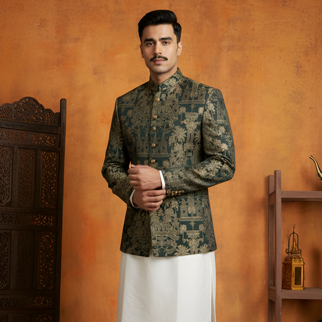 Premium Viscose Jamawar Kai Green Jacket