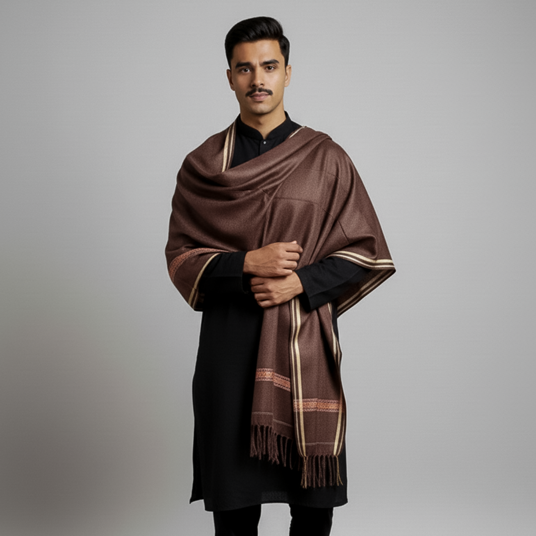 Basic Woolen Deep Mahog Traditional Shawl