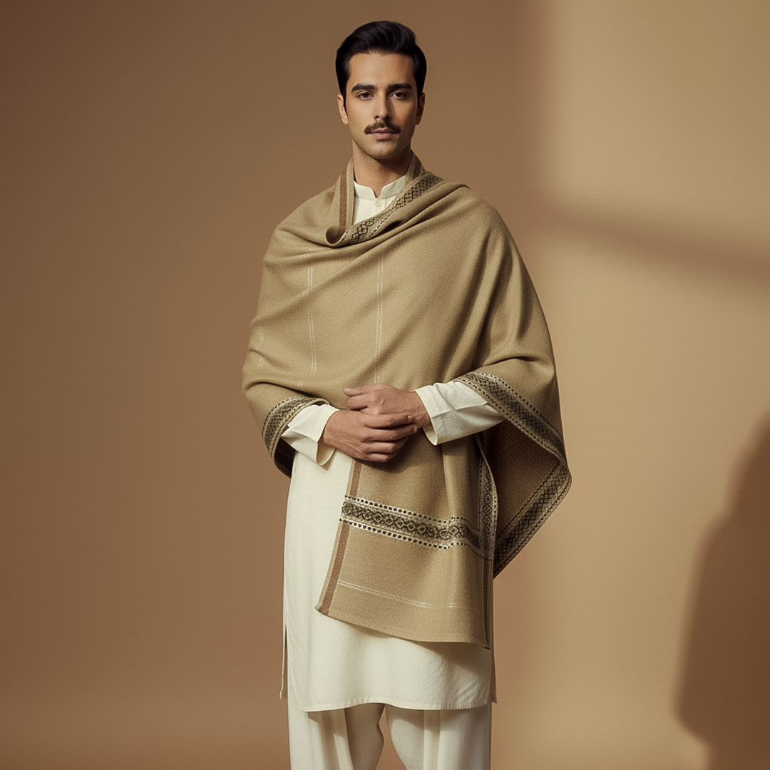 Basic Woolen Tan Traditional Shawl