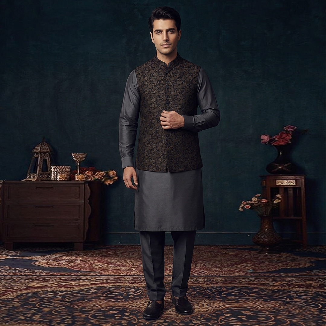 In terms of fabric selection, Amir Adnan offers a diverse range, including silk, velvet, brocade, and jacquard. These fabrics not only exude opulence but also ensure comfort and durability, making the waistcoats suitable for both formal occasions and everyday wear.