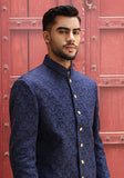 Crafted in Pakistan as a part of the Summer 25 Collection, this Jacket features self-on-self Tap Shoe floral and geometric embroidery all over along with Amir Adnan signature embossed buttons in gold. The outer garment is created using satin fabric that makes the garment soft yet structured. With a straight cut, this sherwani is tapered along the waist and hips to create a slim yet broad shouldered look. The classic fit allows for layering underneath and makes this garment perfect for formal occasions.